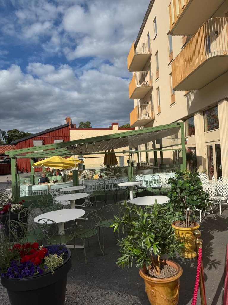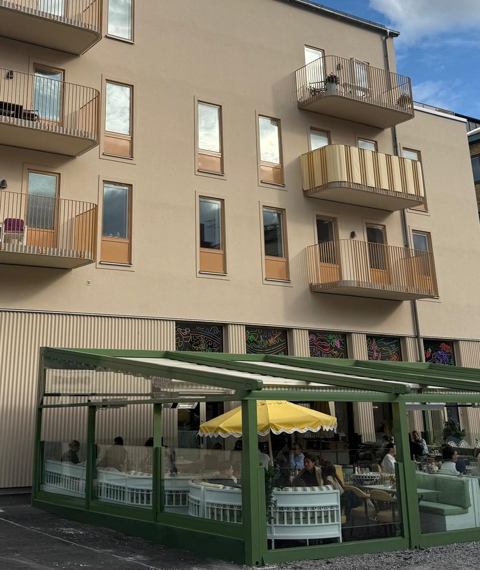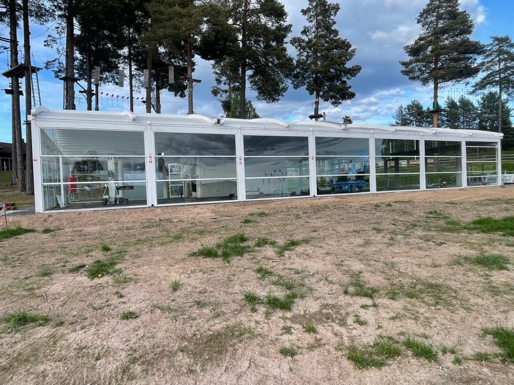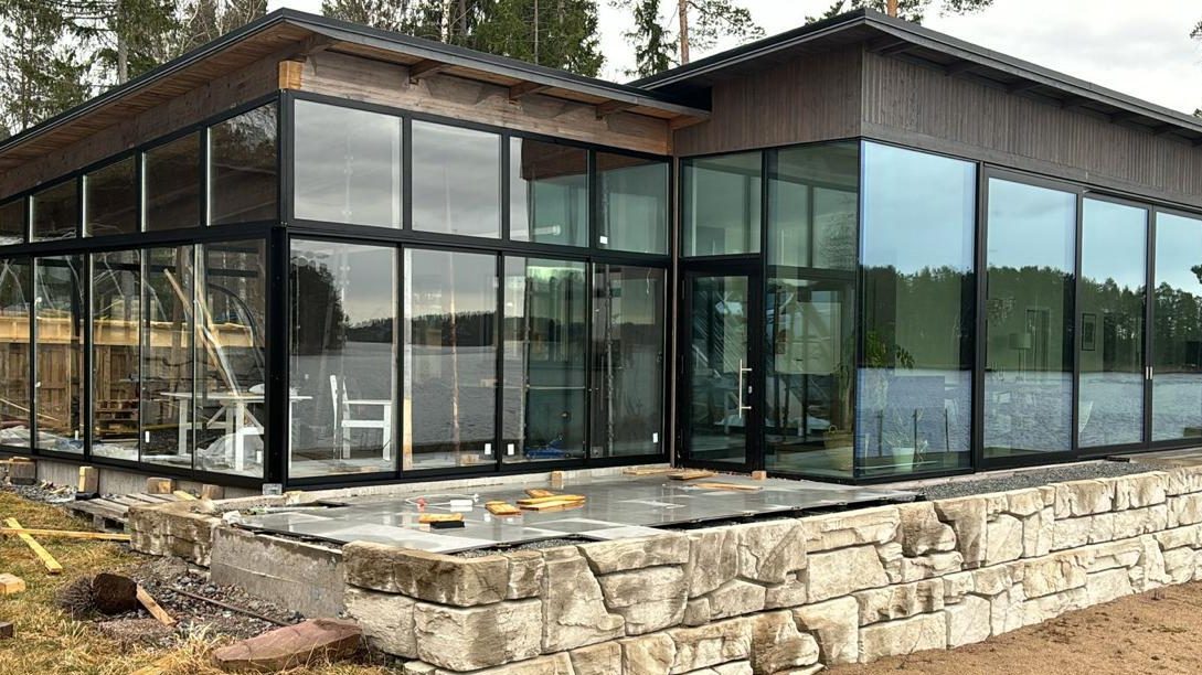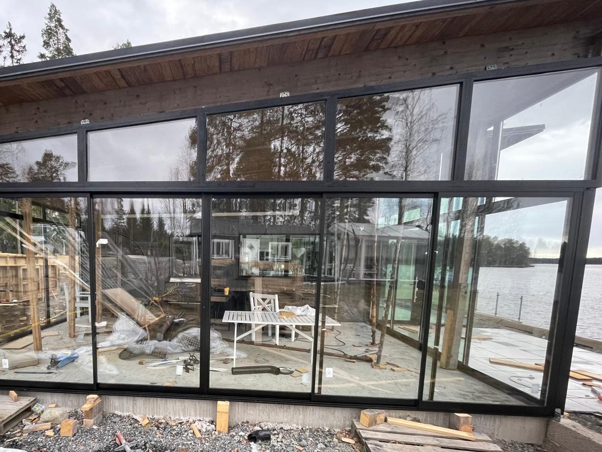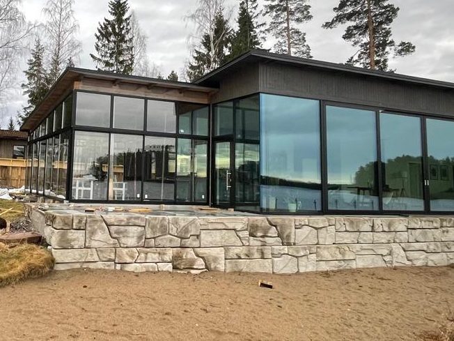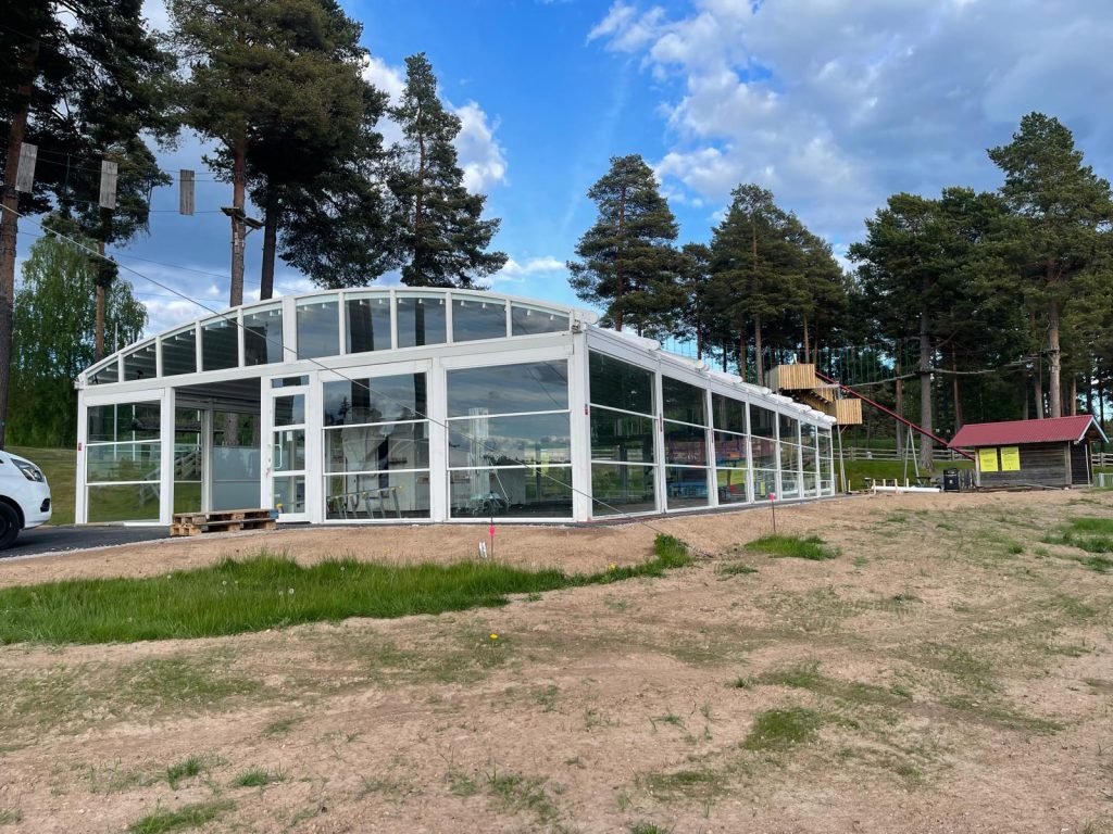 Komplett uterum med förskjutet glastak samt skjutpartier